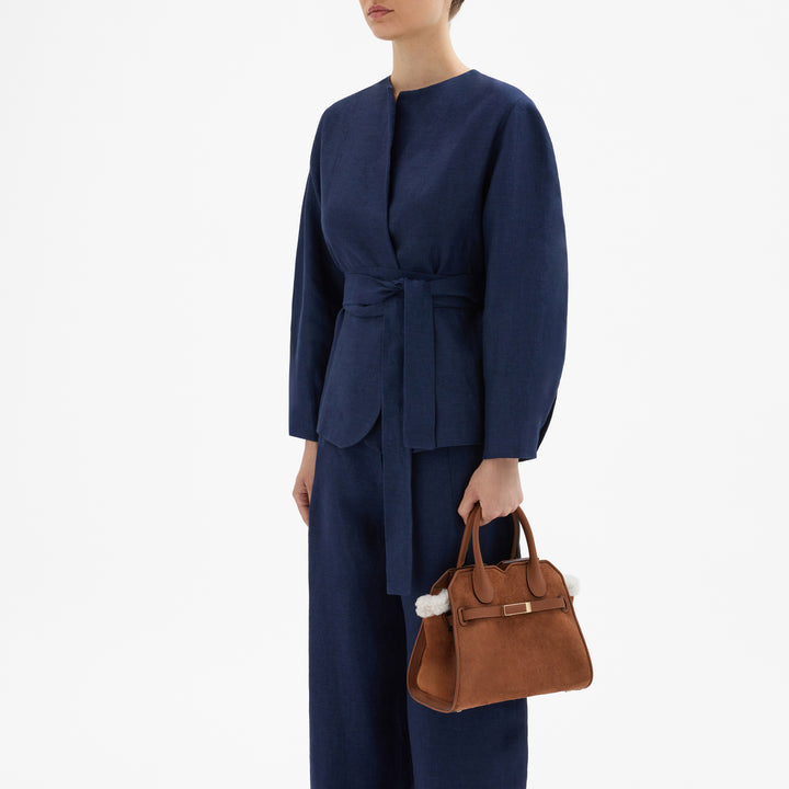 ミラノバッグは、ヴァレクストラを象徴する都会的なエレガンスの極みとして知られるアイコンバッグ。そのデザインが、上質な触感をまとい、新たな表情を見せています。これまでとは異なりスエード面を外側に配した構築的な仕立て。