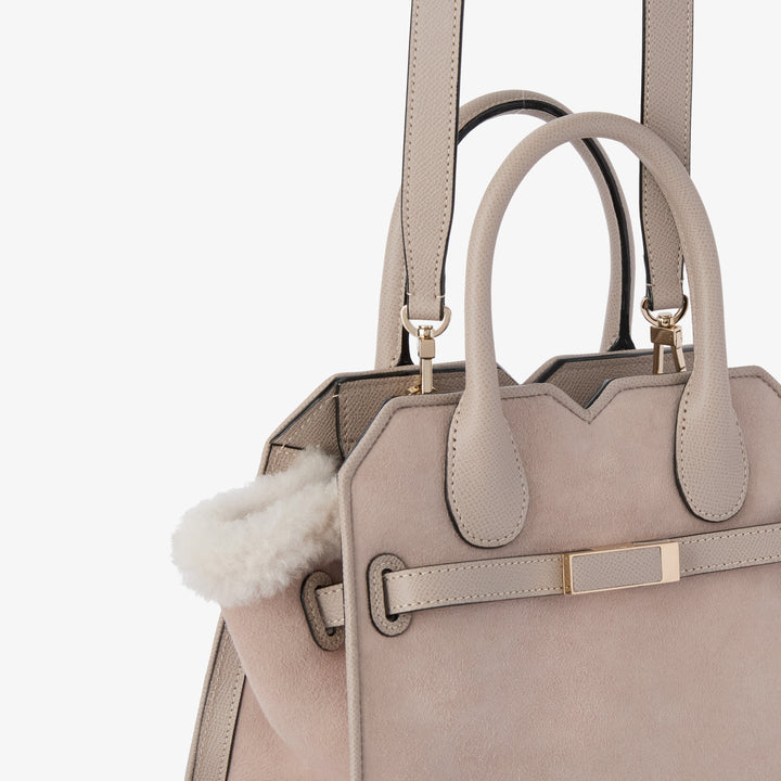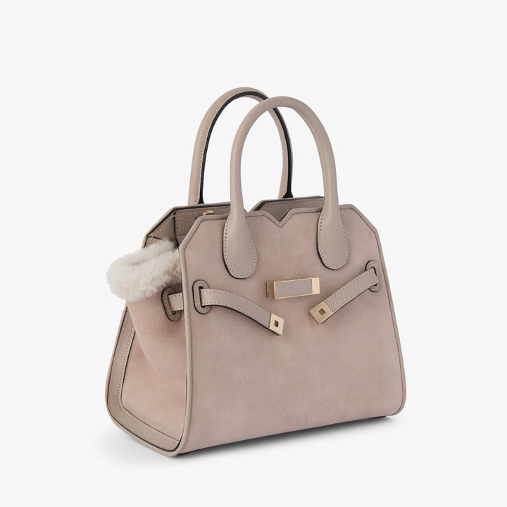 ミラノバッグは、ヴァレクストラを象徴する都会的なエレガンスの極みとして知られるアイコンバッグ。そのデザインが、上質な触感をまとい、新たな表情を見せています。これまでとは異なりスエード面を外側に配した構築的な仕立て。