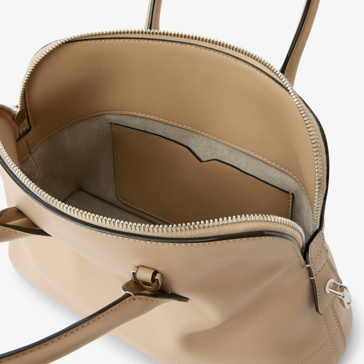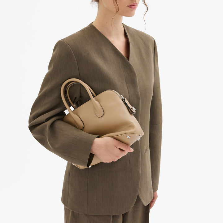 サブライム レザーを、卓越したクラフツマンシップによって仕立てたマイロゴ ミニ。比類なき柔らかさと精緻なディテールは、ミラノならではの洗練を映し出します。グレーのスエードライニングのメインコンパートメントには、ファスナー付きポケットとアイコニックなVカットのポケットを備え、機能性の中にも優美さが息づきます。