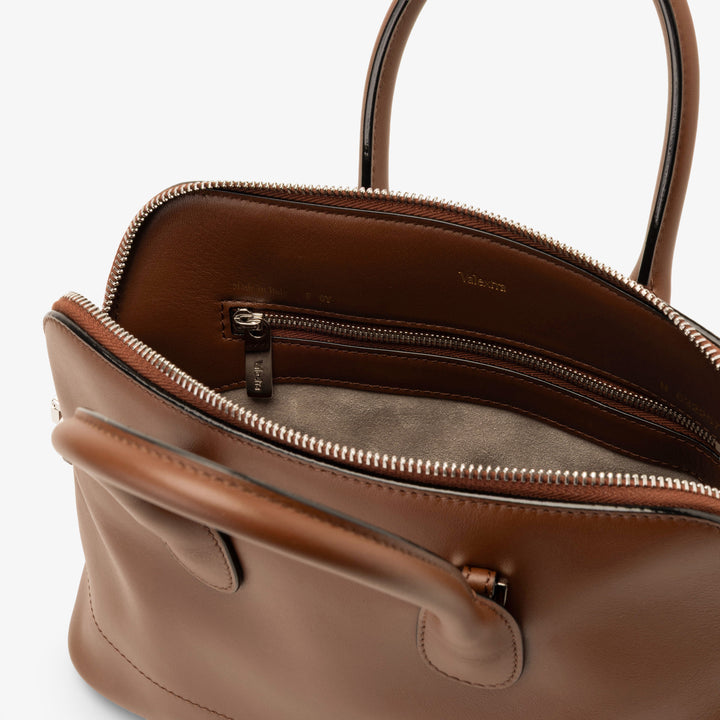 サブライム レザーを、卓越したクラフツマンシップによって仕立てたマイロゴ ミニ。比類なき柔らかさと精緻なディテールは、ミラノならではの洗練を映し出します。グレーのスエードライニングのメインコンパートメントには、ファスナー付きポケットとアイコニックなVカットのポケットを備え、機能性の中にも優美さが息づきます。
