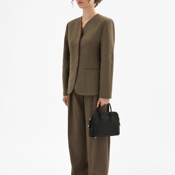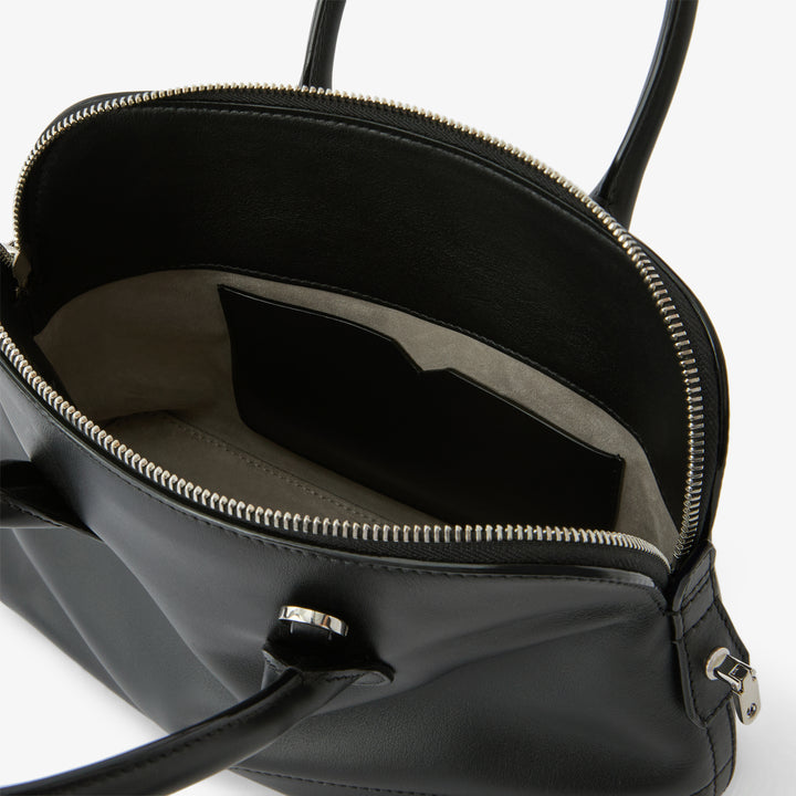 二本のレザーハンドルは手に心地よく、調節・取り外し可能なストラップにより、クロスボディやショルダーとしても自在にお楽しみいただけます。シグネチャーである漆黒のコスタエッジとVカットのディテールで仕上げられ、日常に寄り添いながらも、静かにラグジュアリーを纏う特別なパートナーとなるでしょう。