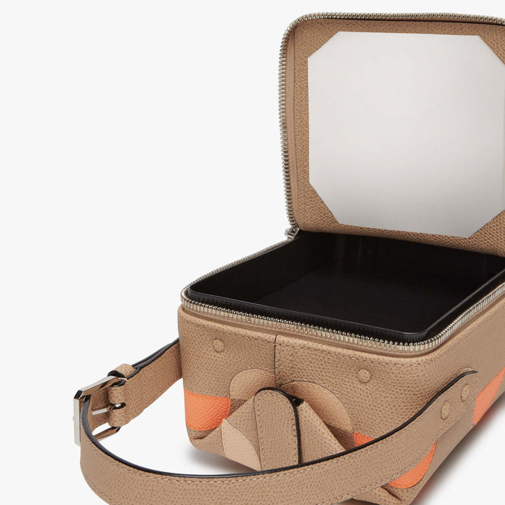 職人技による複雑なインターシャ技法(象嵌細工)によってダイナミックで動きのあるデザインを表現しています。シグネチャーのミレプンテカーフスキンで作られた芸術的な曲線パターンは、トリックトラックがいつまでもスタイリッシュなヴァレクストラのオリジナルアイコンであることを際立たせています。前面と後面の2つのコンパートメントに分かれており、実用的でありながら特別感のあるデザイン性の高いバッグです。