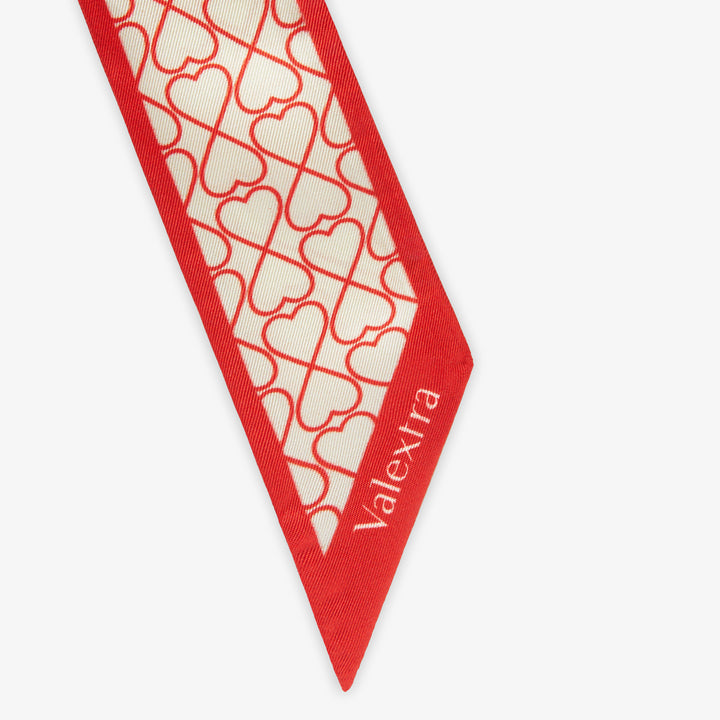 ハート柄のシルクバンドです。ハンドバッグの持ち手やショルダーストラップに巻き付けることで、ヴァレクストラのレザーグッズの持つ洗練された雰囲気をさらに高めてくれます。