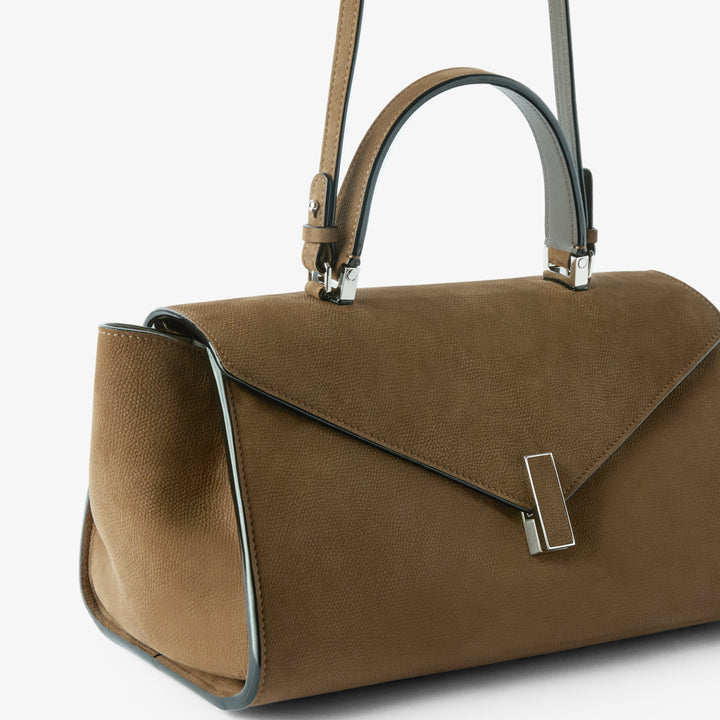 エンボス加工が施されたセンソレザーで仕立てたイジィデ エディターは、イジィデ ファミリーに、幾何学的な美しさを加えた新たな解釈として登場します。横長のシルエットと程よくリラックスした構造が、内容物に柔軟に対応し、日常のあらゆる装いに自然に寄り添うデザインです。内側には日常のシーンに必要なアイテムを余裕をもって収納できる中央コンパートメントを備え、ジップ付きポケットと取り外し・調整可能なショルダーストラップを装備。艶やかなコスタエッジと、イジィデを象徴するクロージャーで仕上げられた、ヴァレクストラのデザイン哲学を体現する、現代のライフスタイルに寄り添うアイコンです。