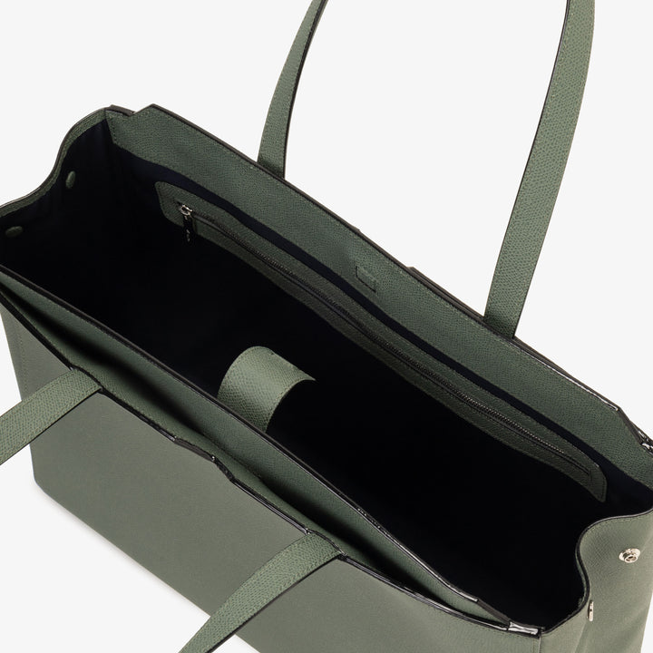 収納力のあるメインのコンパートメントに加え、外側には頻繁に出し入れするアイテムの収納に便利なマグネット開閉のポケットがあります。ハンドルは肩掛けできる長さがあり、荷物が多くなっても安心です。