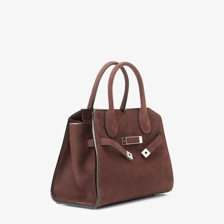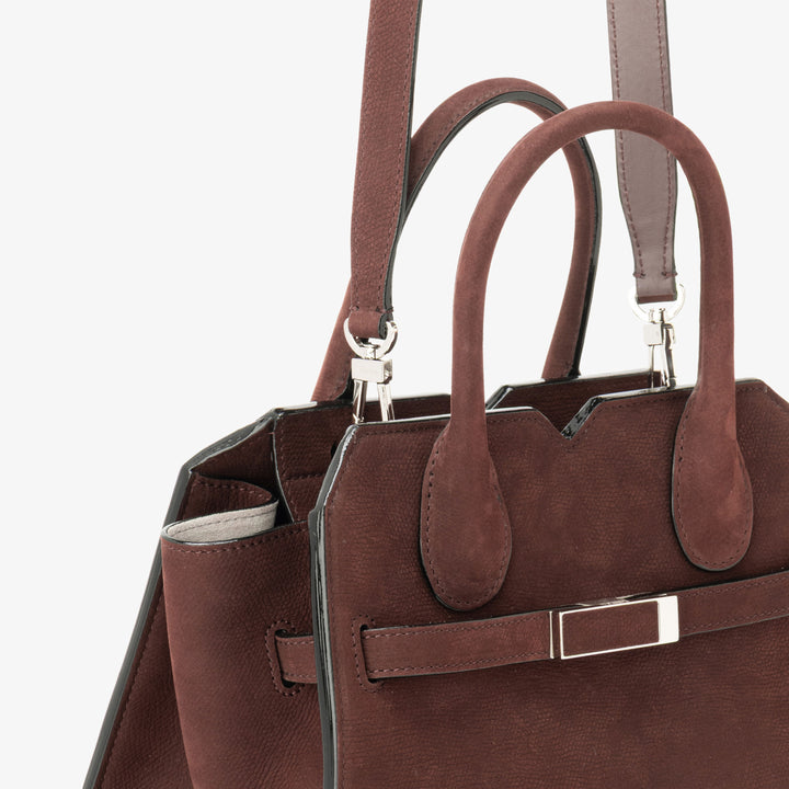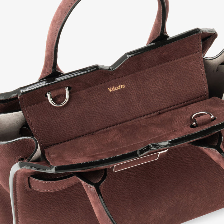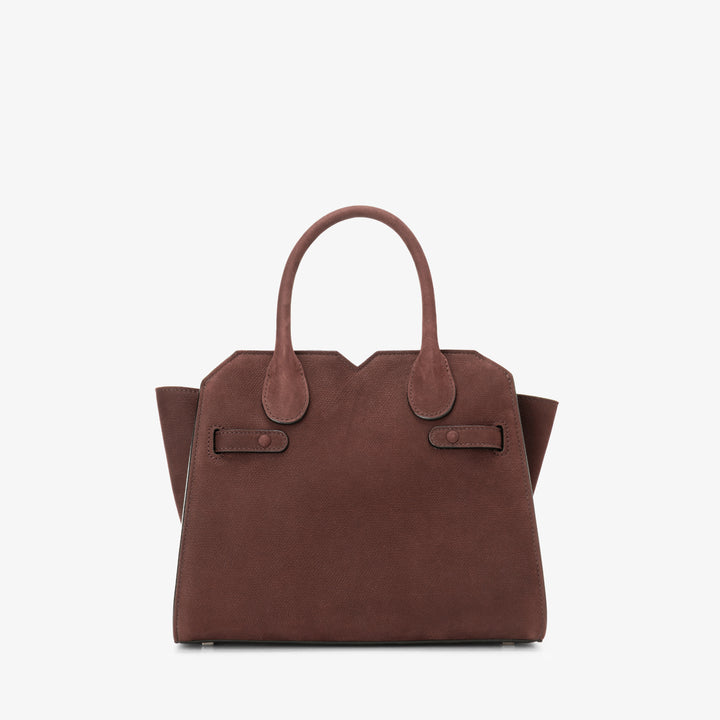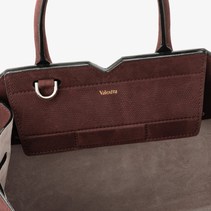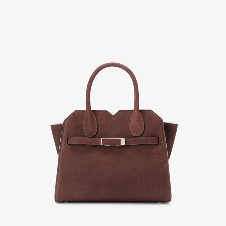 ミラノ センソ ハンドバッグは、構造と素材の両面での優れた完成度により、卓越した存在感を放ちます。極上にソフトなヌバックレザーに、ヴァレクストラを象徴するミレプンテレザーのパターンを型押しすることで、ミラノバッグの構築的なフォルムに柔らかなニュアンスをもたらしています。このミニサイズは、トップハンドルと、長さ調整可能なショルダーストラップでの2ウェイ仕様が可能で、日常使いにふさわしいラグジュアリーなスタイルステートメントとして高い汎用性を備えています。中央のベルトで簡単にサイズ調整ができ、持つ人のスタイルや用途に自然にフィットし、パーソナルな感性を引き立てる存在へと昇華します。