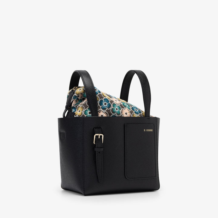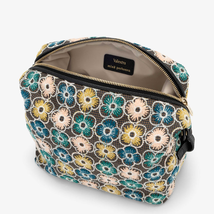 ヴァレクストラを代表するミレプンテレザーのバケットバッグに、ミナ ペルホネンのアーカイブテキスタイル、ピーハで仕立てたポーチを組み合わせた特別なコラボレーションモデル。