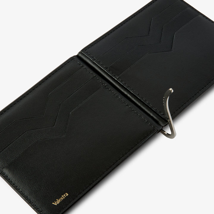 機能と美しさを両立させるという、ヴァレクストラの美学を映したマネークリップ。シグネチャーのVカットを施した6つのカードスロットを備え、カードをスムーズに取り出せる設計です。内側にメタル製の紙幣用クリップ配し、ジャケットのポケットやバッグにも収まりやすいスリムなフォルムに仕上げました。必要なものを常に手元に、美しく携えられる財布です。