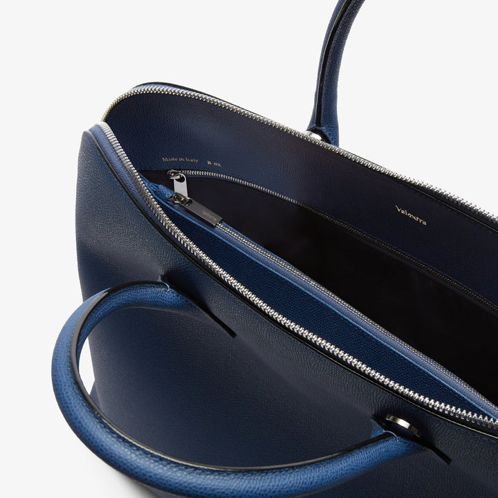 マイロゴは大ぶりのダブルハンドルバッグで、1泊2日の旅行にも使えるサイズです。バッグの内側にはラップトップを収納できるポケットを兼ねた仕切りがあり、荷物を分けて整理することも可能です。取り外し可能なショルダーストラップもついています。