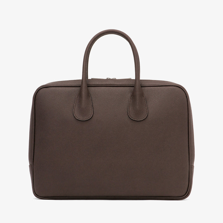 マイロゴブリーフケースのスリムなモデルは、あらゆる環境でエレガントな雰囲気を醸し出します。13 インチのラップトップを収納できるよう設計された内部コンパートメントと、ファスナー開閉のオープンポケットで構成されており、A4 書類やポートフォリオを簡単に収納できます。 快適なトップハンドル、または個人の好みに合わせて取り外し可能な調節可能な布製ストラップで持ち運ぶことができます。
