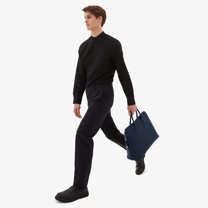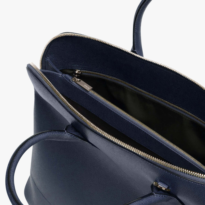 マイロゴは大ぶりのダブルハンドルバッグで、1泊2日の旅行にも使えるサイズです。バッグの内側にはラップトップを収納できるポケットを兼ねた仕切りがあり、荷物を分けて整理することも可能です。取り外し可能なショルダーストラップもついています。