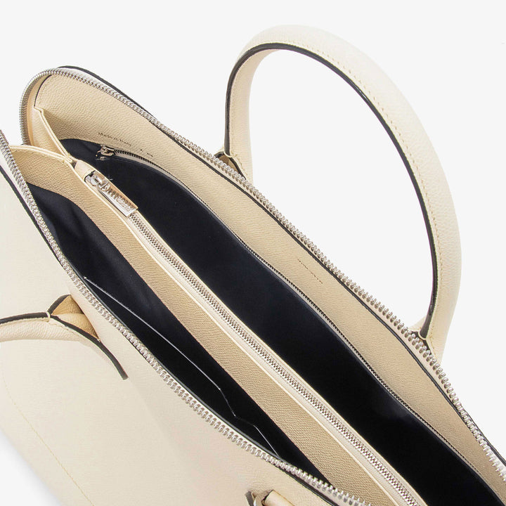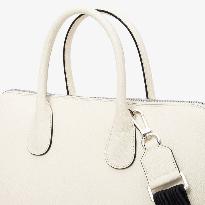 マイロゴは大ぶりのダブルハンドルバッグで、1泊2日の旅行にも使えるサイズです。バッグの内側にはラップトップを収納できるポケットを兼ねた仕切りがあり、荷物を分けて整理することも可能です。取り外し可能なショルダーストラップもついています。