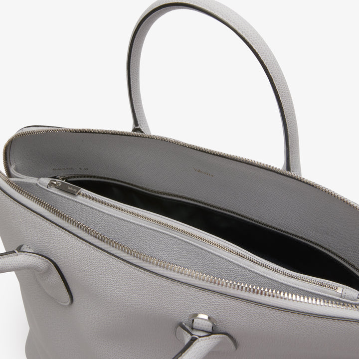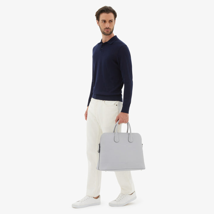 マイロゴは大ぶりのダブルハンドルバッグで、1泊2日の旅行にも使えるサイズです。バッグの内側にはラップトップを収納できるポケットを兼ねた仕切りがあり、荷物を分けて整理することも可能です。取り外し可能なショルダーストラップもついています。