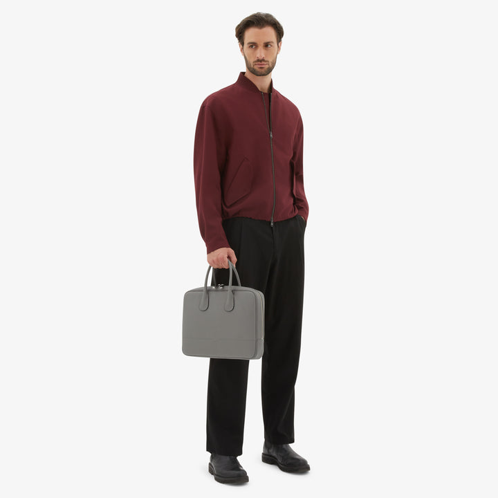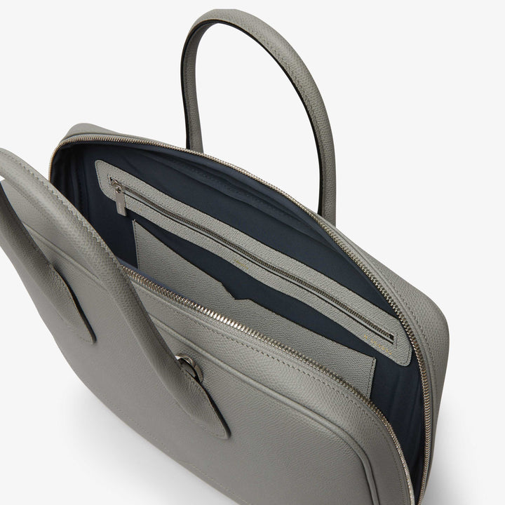 マイロゴブリーフケースのスリムなモデルは、あらゆる環境でエレガントな雰囲気を醸し出します。13 インチのラップトップを収納できるよう設計された内部コンパートメントと、ファスナー開閉のオープンポケットで構成されており、A4 書類やポートフォリオを簡単に収納できます。 快適なトップハンドル、または個人の好みに合わせて取り外し可能な調節可能な布製ストラップで持ち運ぶことができます。