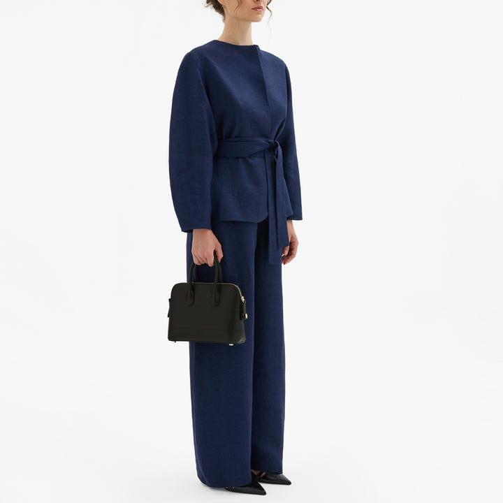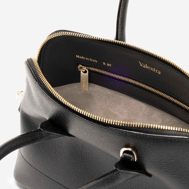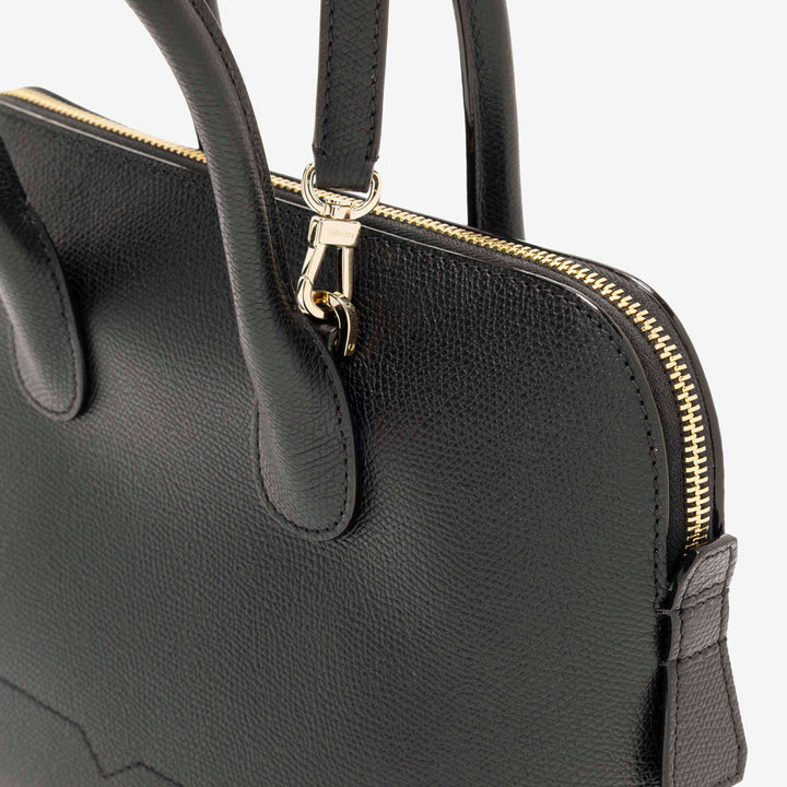 快適なレザーダブルハンドルに加え、調節可能で取り外し可能なストラップが付属しており、クロスボディやショルダーとしてもお使いいただけます。シグネチャーである漆黒のコスタエッジとVカットのディテールで仕上げられた、日常を格上げするパートナーです。