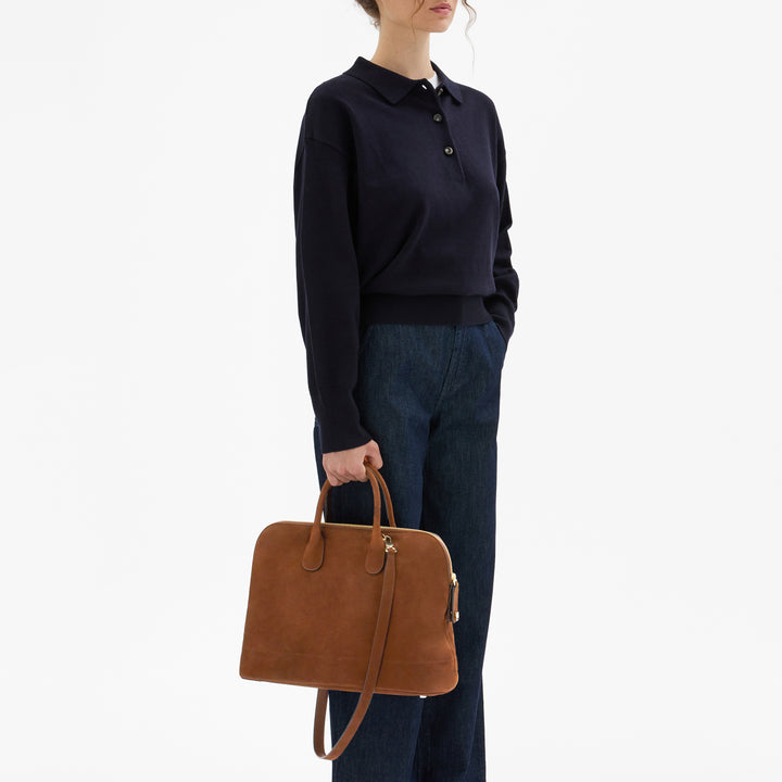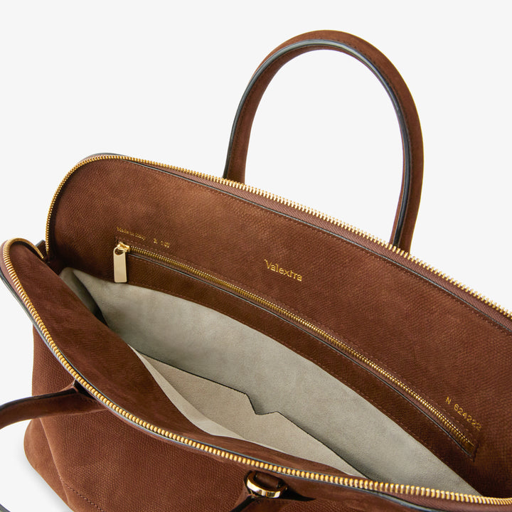 マイロゴ ミディアム は、センソ スエードと上品で落ち着いた色調によって、日常を格上げするラグジュアリーを体現しています。ゆとりある内装には、15インチのノートパソコンを収納できるスペースに加え、貴重品用のポケットも備えています。ヴァレクストラならではのディテールとしてミレプンテレザーのパターンが型押しされており、職人とブランドを示すシリアルナンバーの刻印も施されています。さらにブラックラッカー仕上げのコスタエッジで丁寧に仕上げられ、日常使いの相棒でありながら、タイムレスな職人技の結晶としての存在感を放ちます。
