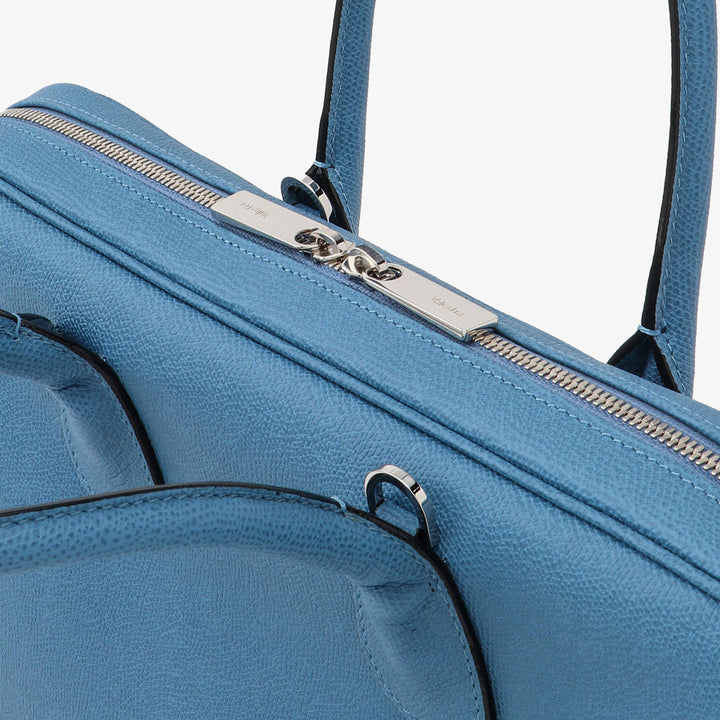マイロゴブリーフケースのスリムなモデルは、あらゆる環境でエレガントな雰囲気を醸し出します。13 インチのラップトップを収納できるよう設計された内部コンパートメントと、ファスナー開閉のオープンポケットで構成されており、A4 書類やポートフォリオを簡単に収納できます。 快適なトップハンドル、または個人の好みに合わせて取り外し可能な調節可能な布製ストラップで持ち運ぶことができます。