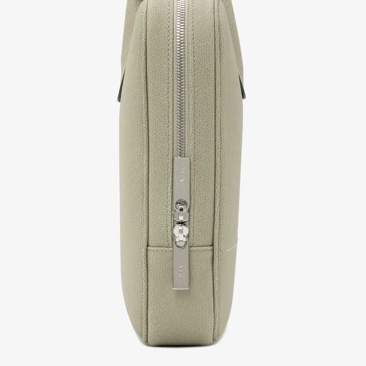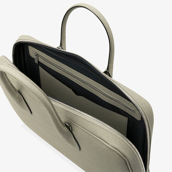 マイロゴブリーフケースのスリムなモデルは、あらゆる環境でエレガントな雰囲気を醸し出します。13 インチのラップトップを収納できるよう設計された内部コンパートメントと、ファスナー開閉のオープンポケットで構成されており、A4 書類やポートフォリオを簡単に収納できます。 快適なトップハンドル、または個人の好みに合わせて取り外し可能な調節可能な布製ストラップで持ち運ぶことができます。