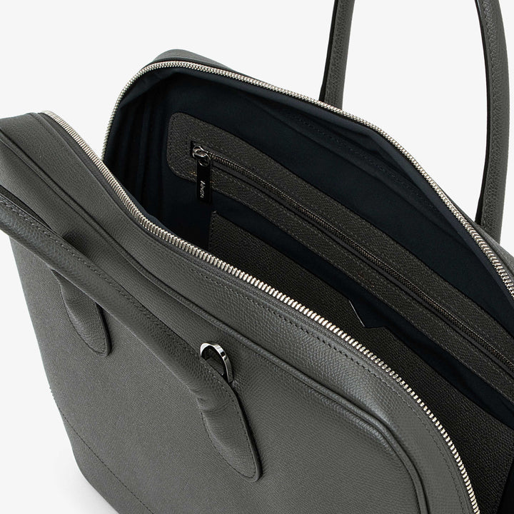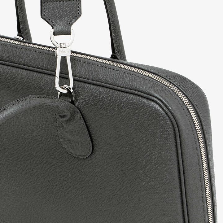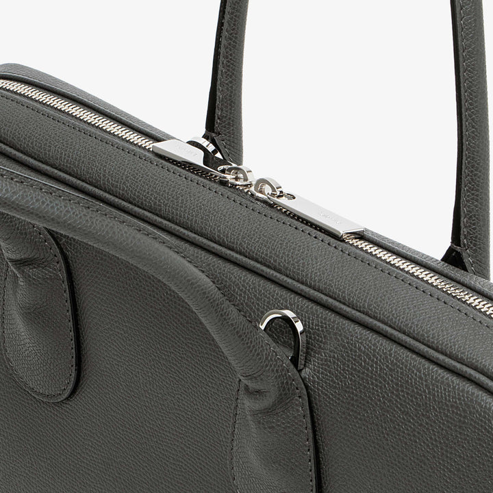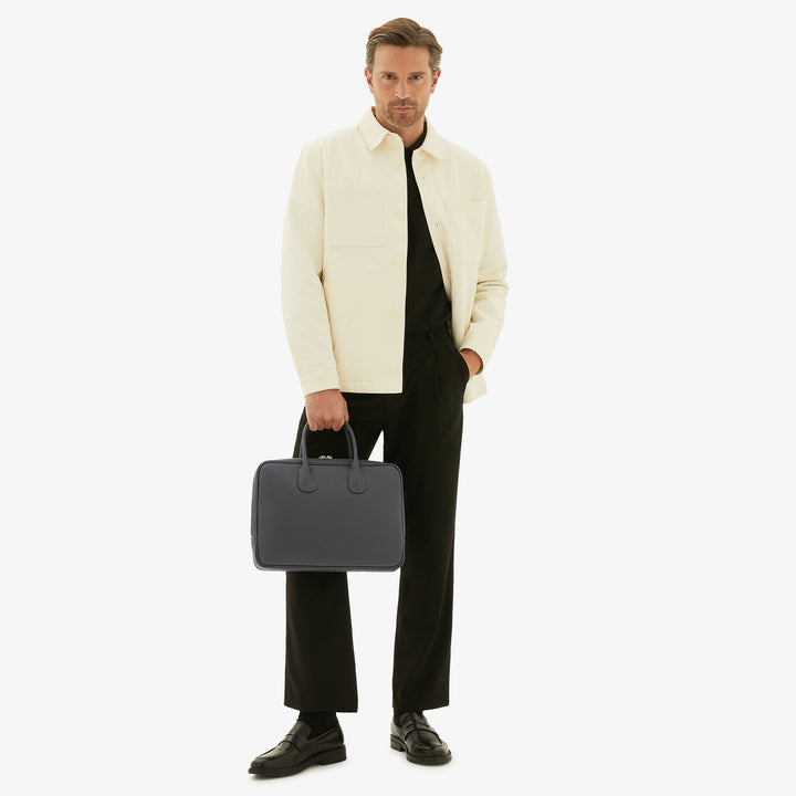 マイロゴブリーフケースのスリムなモデルは、あらゆる環境でエレガントな雰囲気を醸し出します。13 インチのラップトップを収納できるよう設計された内部コンパートメントと、ファスナー開閉のオープンポケットで構成されており、A4 書類やポートフォリオを簡単に収納できます。 快適なトップハンドル、または個人の好みに合わせて取り外し可能な調節可能な布製ストラップで持ち運ぶことができます。