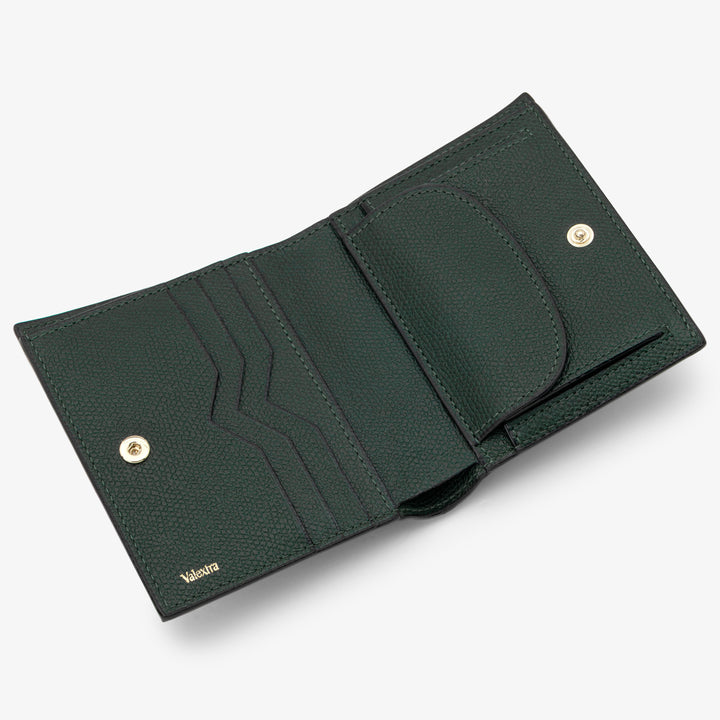 このコンパクトな財布は、エルゴノデザインである V カットを施したカードスロットとスナップフック付きの小銭入れを備え、カードと現金をきちんと整理して収納できます。パーツごとの境界を際立たせる手描きのインキオストロのラインや、コバに施された黒漆のコスタエッジペインティングなどのディテールが、ブランドの職人技へのこだわりを強調しています。
