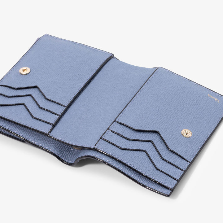 ミニマルなデザインながら、基本的な機能性を備えた二つ折り財布です。特徴的なV字のカットアウトを入れた6つのカードスロットに、2つのマルチなカードスロット、紙幣用のコンパートメント、さらにファスナー開閉の小銭用のコンパートメントがあります。コバに施された漆黒のエッジペインティングはすべて職人の手仕事によります。