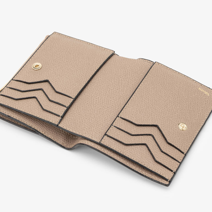 ミニマルなデザインながら、基本的な機能性を備えた二つ折り財布です。特徴的なV字のカットアウトを入れた6つのカードスロットに、2つのマルチなカードスロット、紙幣用のコンパートメント、さらにファスナー開閉の小銭用のコンパートメントがあります。コバに施された漆黒のエッジペインティングはすべて職人の手仕事によります。