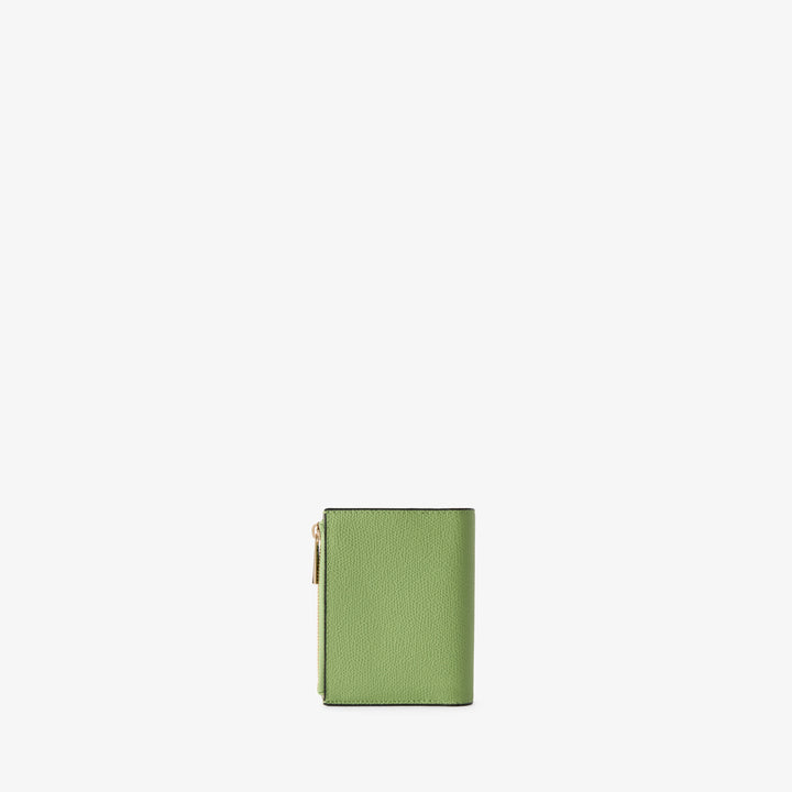 ミニマルなデザインながら、基本的な機能性を備えた二つ折り財布です。特徴的なV字のカットアウトを入れた6つのカードスロットに、2つのマルチなカードスロット、紙幣用のコンパートメント、さらにファスナー開閉の小銭用のコンパートメントがあります。コバに施された漆黒のエッジペインティングはすべて職人の手仕事によります。
