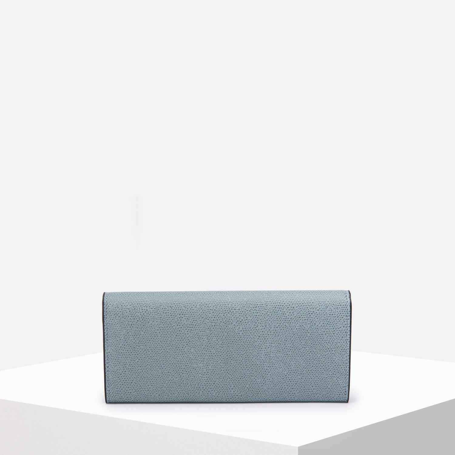 コインケース付きの2つ折り財布。ブランドの象徴であるV字カットが施された3つのクレジットカードスロット、フリーポケット付き。 コインケースは中仕切り付き。ライナーは革張り。