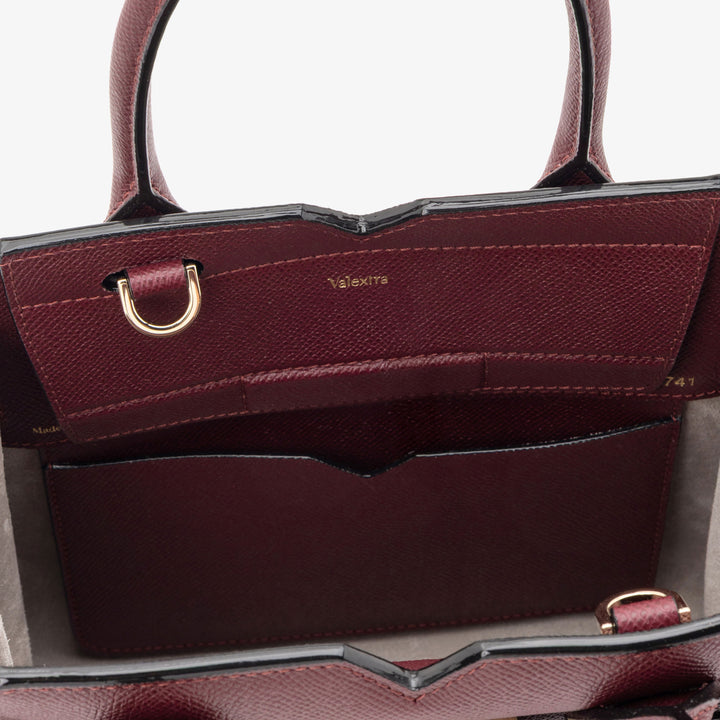 ソフトに仕上げられたミレプンテカーフスキンを使用したミラノバッグは、イジィデから着想を得たクロージャーや漆黒のエッジペインティングなどヴァレクストラのシグネチャーを備えた都会的なクラフツマンシップへの賛歌です。バッグの内側には、iPadを収納できるスペースやポケットがあり、持ち物の整理がしやすいです。そして取り外し可能なショルダーストラップも付属します。