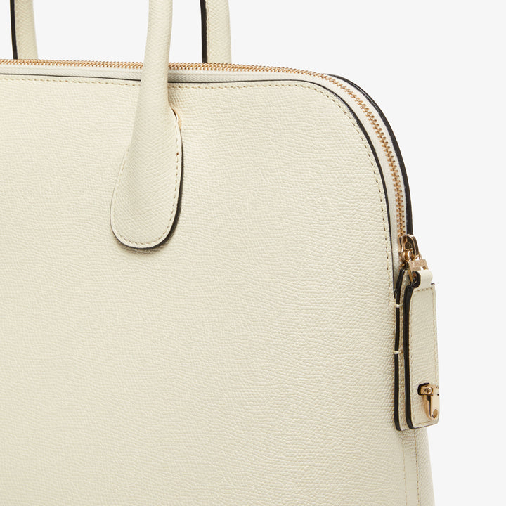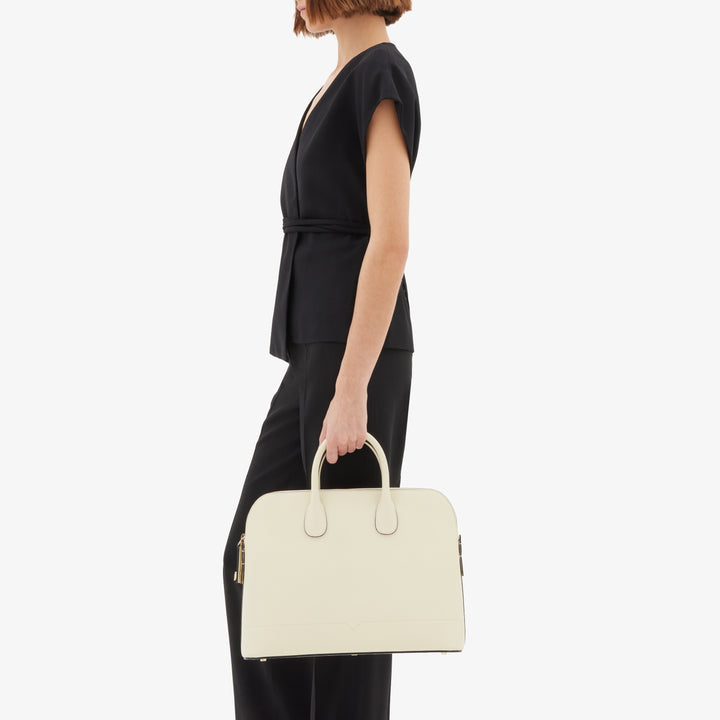 ダブルハンドルで快適に持ち運べ、シグネチャーである漆黒のコスタエッジとグレーのスエードライニングが、洗練された仕上がりを演出します。タイムレスでありながらモダン──それは、時代を超えて愛されるラグジュアリーレザーのアイコンです。