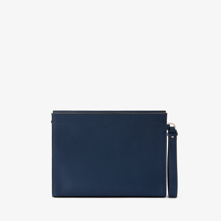 洗練されたビジネスアクセサリーとして確かな印象をもたらすVライン クラッチバッグ。ミレプンテレザーで仕立てられ、必需品をを美しく、端正に収納します。手持ちとしてはもちろん、リストストラップで手首に掛けて持ち運ぶことも可能。漆黒の艶やかなコスタエッジが全体を引き締め、ミラノが誇る卓越したクラフツマンシップへのオマージュとして、ひときわ印象的な存在感を放ちます。