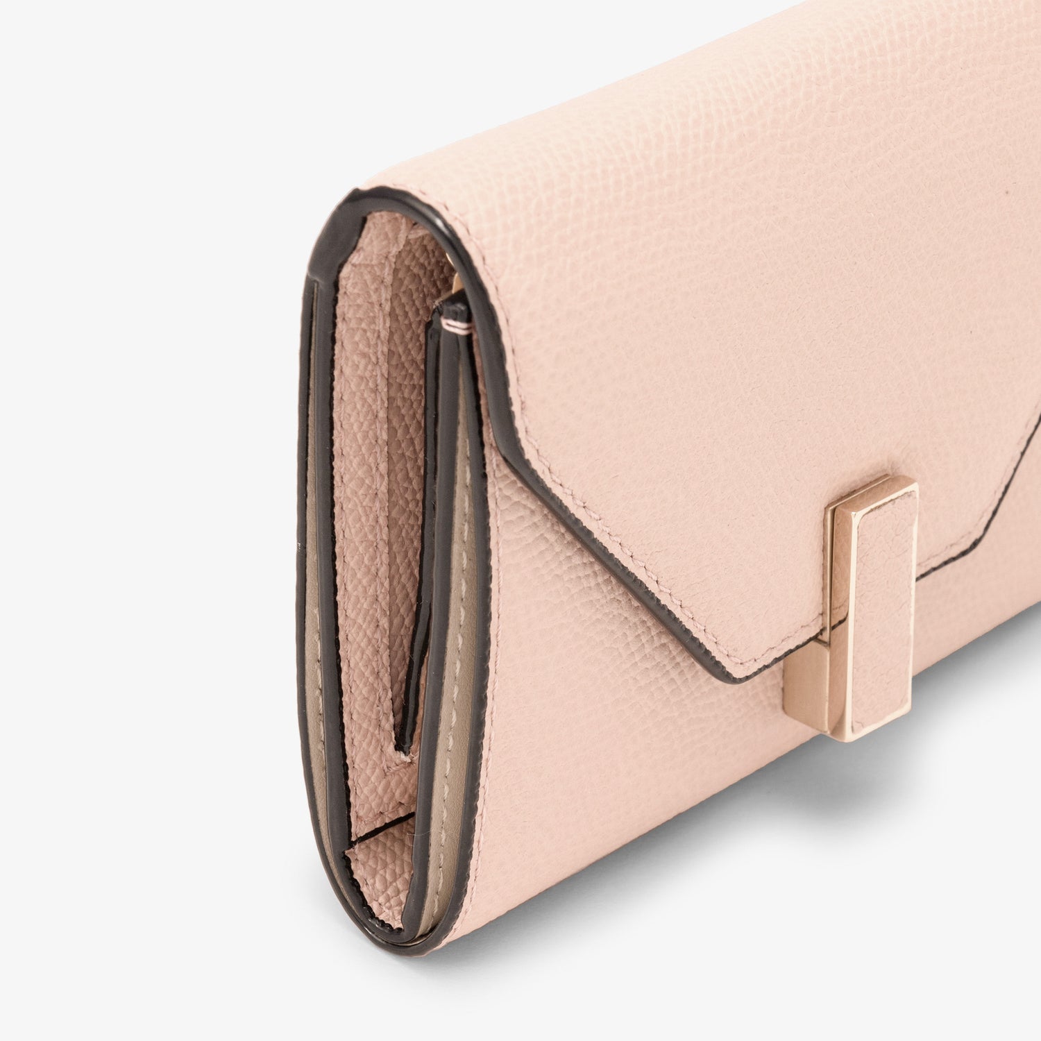 アイコニックなレザーで覆ったクロージャー付きのイジィデウォレットは、ヴァレクストラのスタイルをハンディな折りたたみ式の形に凝縮し、カードや小銭、紙幣が入る十分なスペースを確保しています。現代社会を生きる女性にとって究極の万能型アイテムで、エレガンスと実用性のタイムレスなミックスが特長です。
