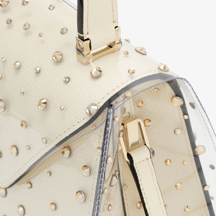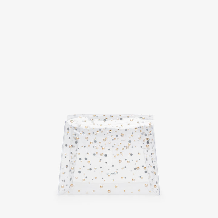 ラインストーンで飾られた透明な素材はリサイクル可能なプラスチック製。ミニイジィデにジャストフィットするよう正確にカットされています。