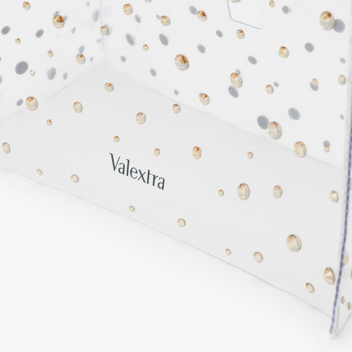 ヴァレクストラの象徴的なパッケージは、ミラノのサン・バビラ広場にあるオリジナルフラッグシップブティックの窓の形状を反映した特徴的な曲線状の角が特徴です。シグネチャーカラーであるヴァレクストラグリーンで仕上げられたラッピングは、ロゴが施されたグリーンリボンで彩られ、最高級の職人技を象徴する完璧な仕上がりとなっています。