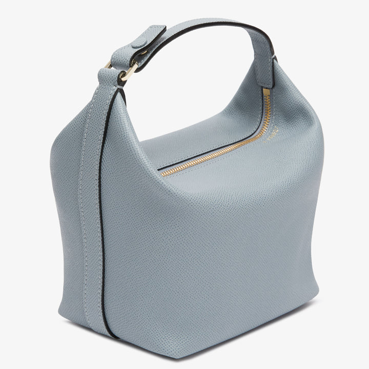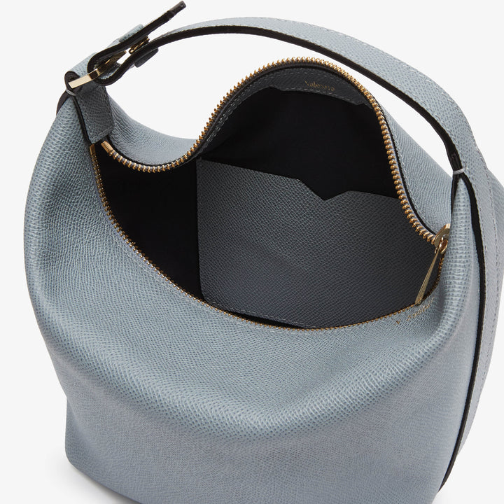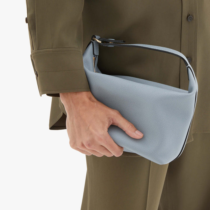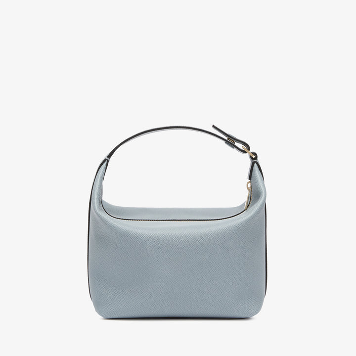 モチバッグはポーチとして、また付属のストラップを付けてクロスキャリーとしても使える2ウェイバッグで、ヴァレクストラのソフトカーフスキンがミニマルなデザインを上品に引き立てます。