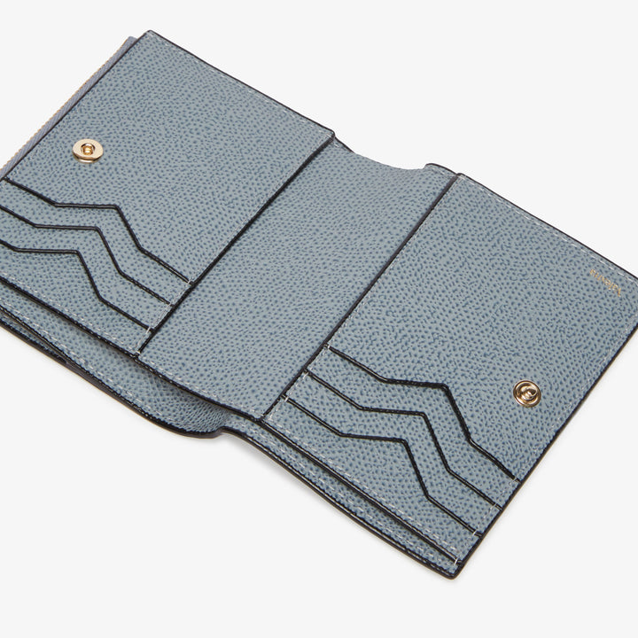 ミニマルなデザインながら、基本的な機能性を備えた二つ折り財布です。特徴的なV字のカットアウトを入れた6つのカードスロットに、2つのマルチなカードスロット、紙幣用のコンパートメント、さらにファスナー開閉の小銭用のコンパートメントがあります。コバに施された漆黒のエッジペインティングはすべて職人の手仕事によります。