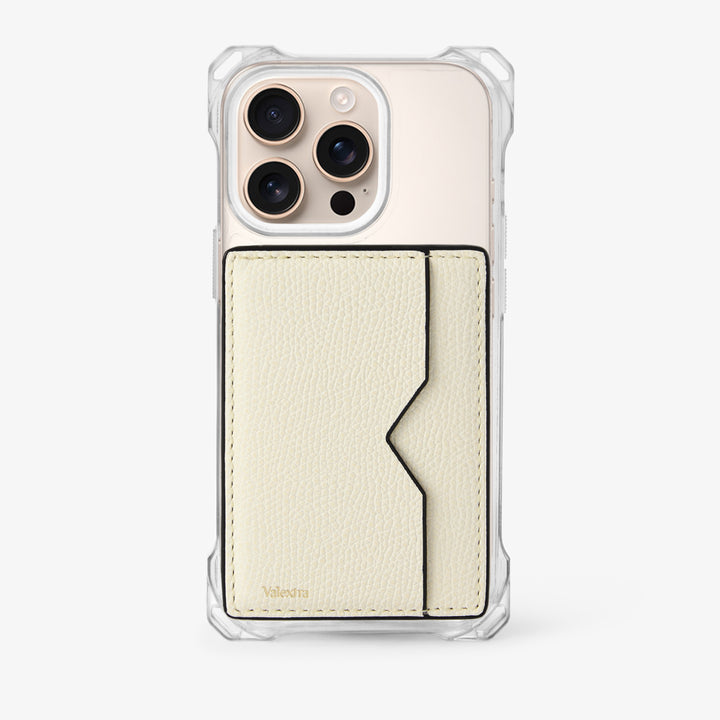 スムーズな動きを想定した発想から生まれたマグネティック カードケースは、スタイルと機能性を融合させたアイテムです。MagSafeテクノロジーに対応し、スマートフォンの背面に装着可能。Vカットスロットを備え、テクノロジーとカードをひとつにまとめ、必要なときにすぐ取り出せます。ミレプンテレザーで仕立てられたこのカードケースは、洗練された個性を日常的なデバイスに添え、日々の所作をさりげなく格上げします。