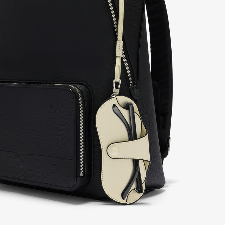 艶やかなブラックのコスタで丹念に仕上げ、バッグに取り付けたり、アクセサリー感覚で身に着けられるようにストラップを備えました。ゲレンデでもサングラスやアイウェアを美しい状態で保ち、必要なときにすぐ手に取れるよう設計された、遊び心とタイムレスな魅力を併せ持つ一品です。