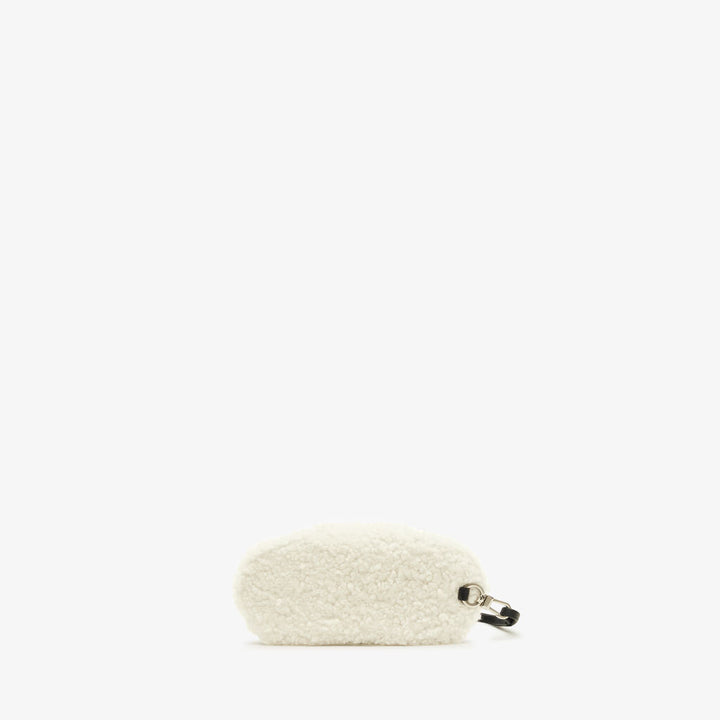 柔らかなシアリング素材とミレプンテレザーで作られた、アニマルモチーフの遊び心のあるメガネケース。ストラップ付きで、アクセサリーのように首から下げて着用したり、バッグにチャーム感覚で取り付けて楽しむこともできます。