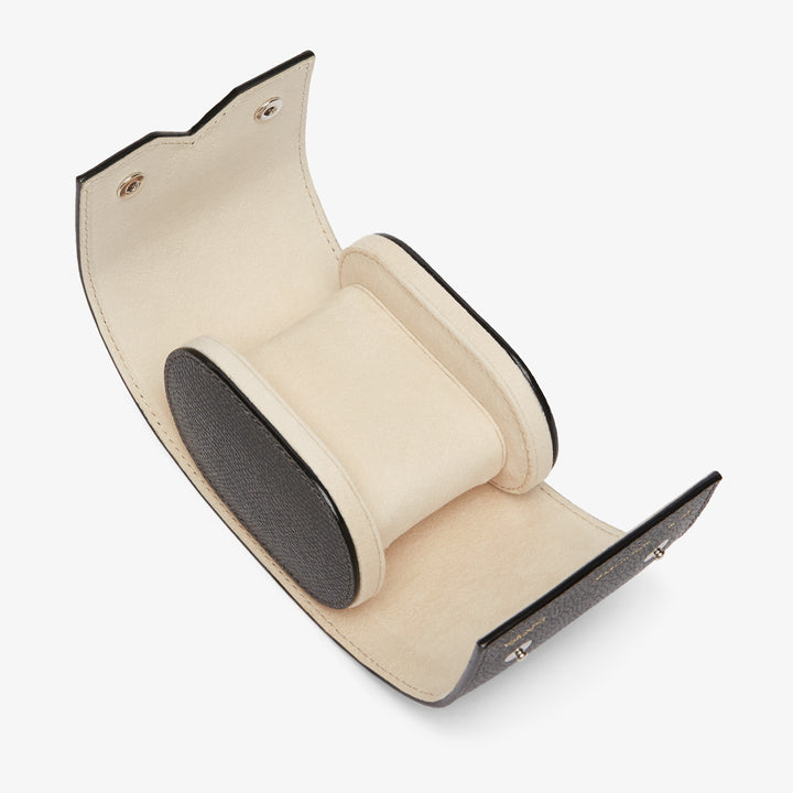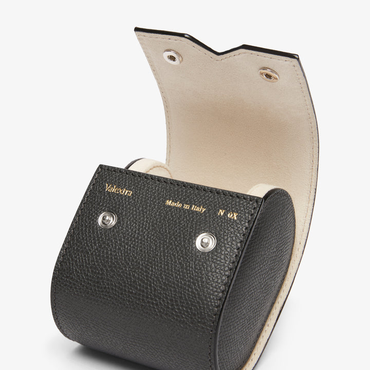 ヴァレクストラの代表的なミレプンテカーフレザーでつくられたウォッチケースです。ライニングはアルカンターラ素材で、時計やリストピースを簡単に出し入れできる仕様になっています。旅行にもとても便利なアイテムになります。