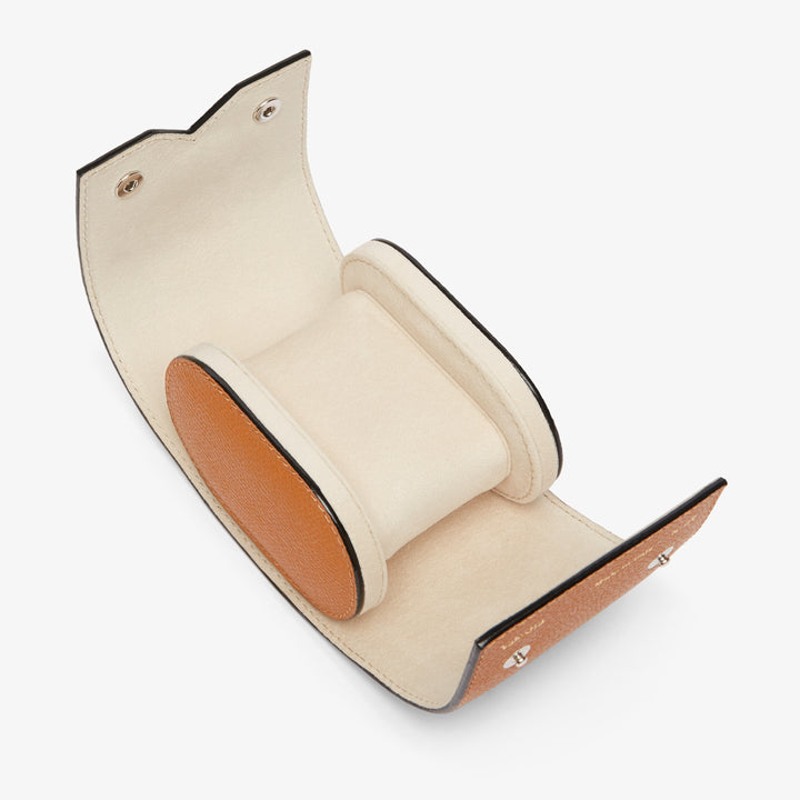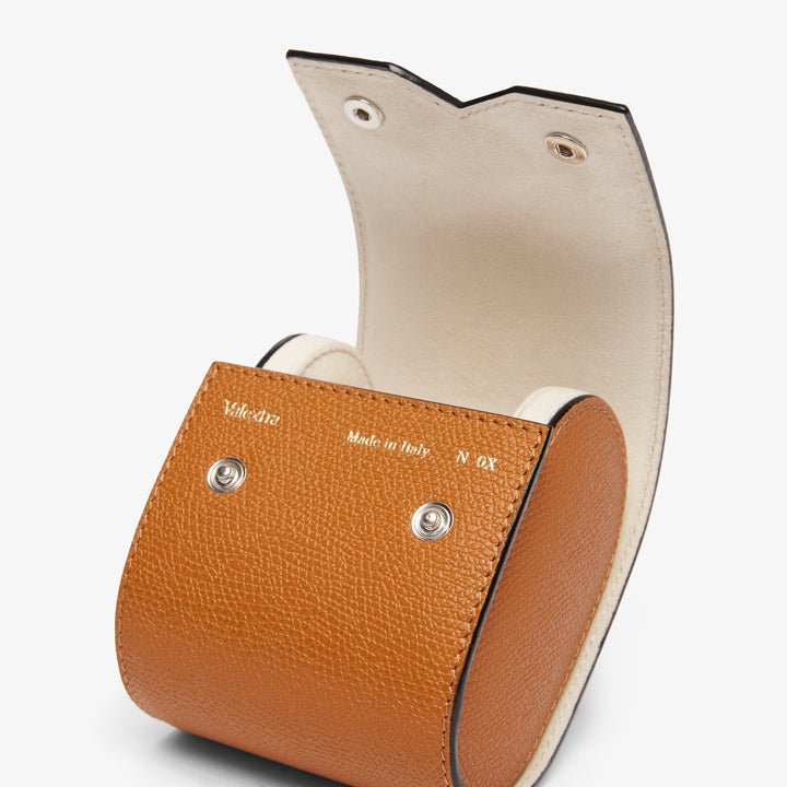 ヴァレクストラの代表的なミレプンテカーフレザーでつくられたウォッチケースです。ライニングはアルカンターラ素材で、時計やリストピースを簡単に出し入れできる仕様になっています。旅行にもとても便利なアイテムになります。