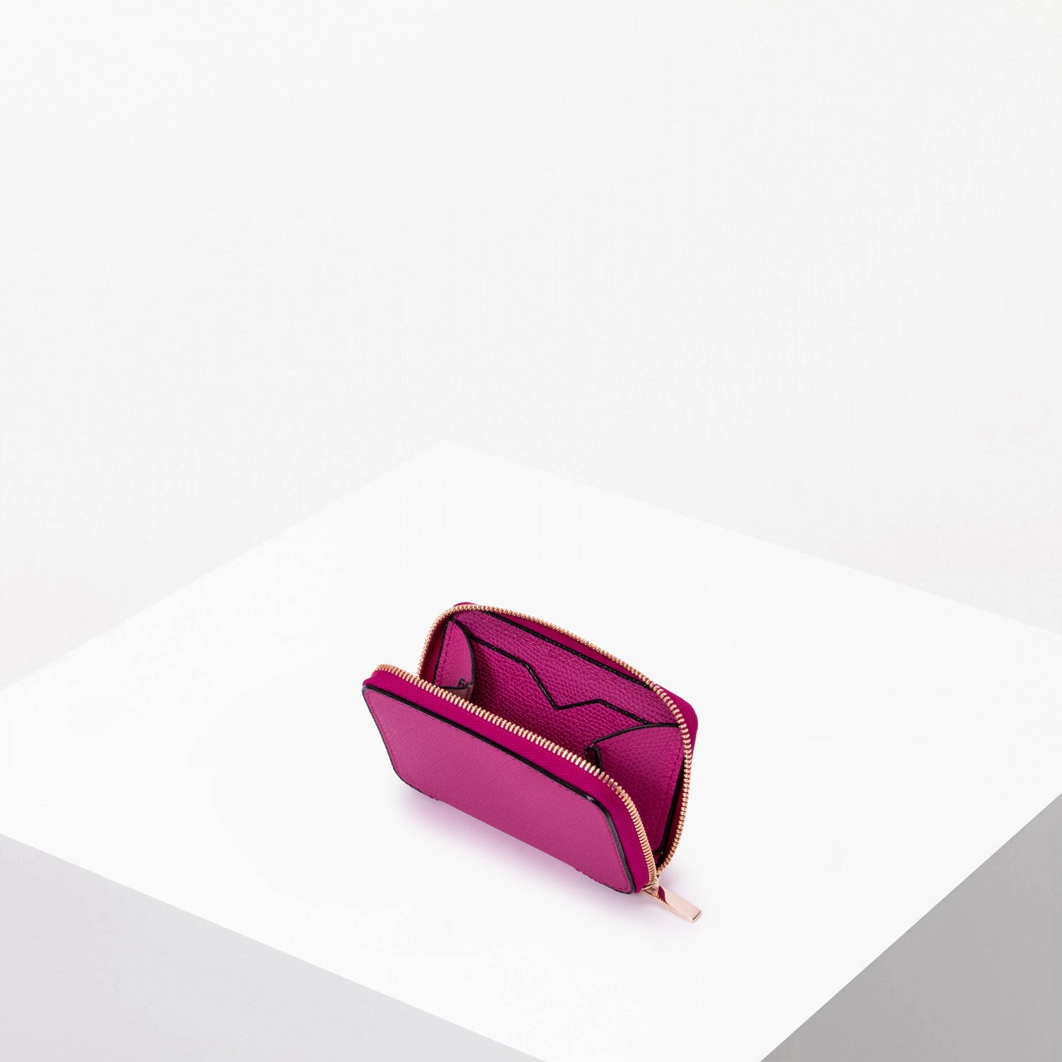 ジップ式のミニウォレット。豊富なカラーバリエーションを展開しています。内側にはブランドの象徴であるV字カットが施されたクレジットカードホルダー2つ付き。