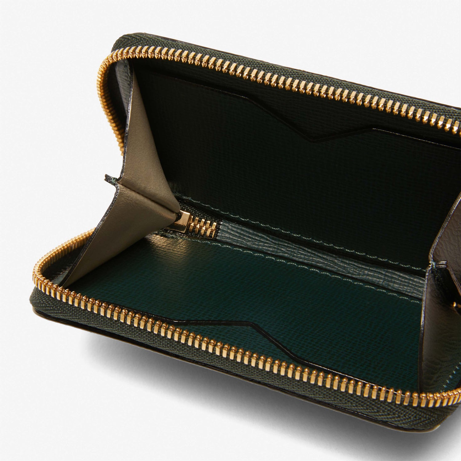 ジップ式のミニウォレット。豊富なカラーバリエーションを展開しています。内側にはブランドの象徴であるV字カットが施されたクレジットカードホルダー2つ付き。