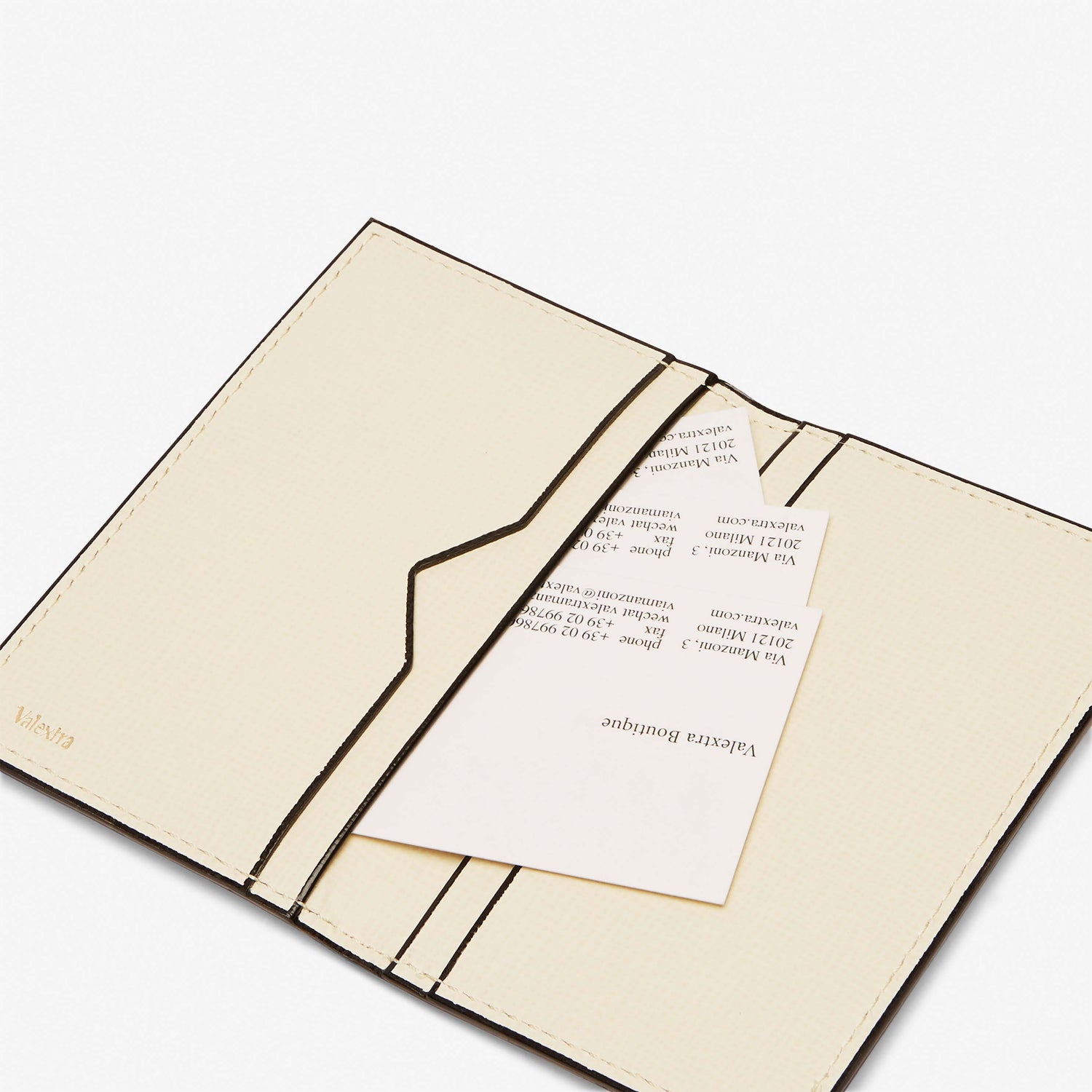 エレガントな印象を与えること間違いなしの名刺ケースです。名刺用コンパートメント2つ、V字カットが印象的なクレジットカード用スロット2つ付き。ライナーは革張り。コバと呼ばれる革をカットした端の部分にヴァレクストラ独自の染料”Costa”を手作業で何層にも塗り重ねて磨き上げました。