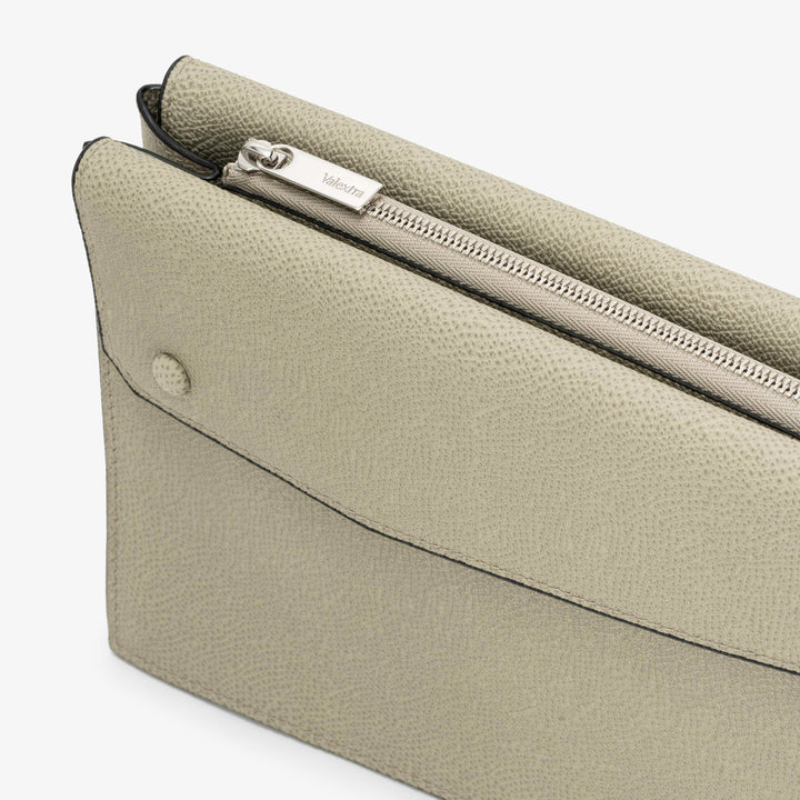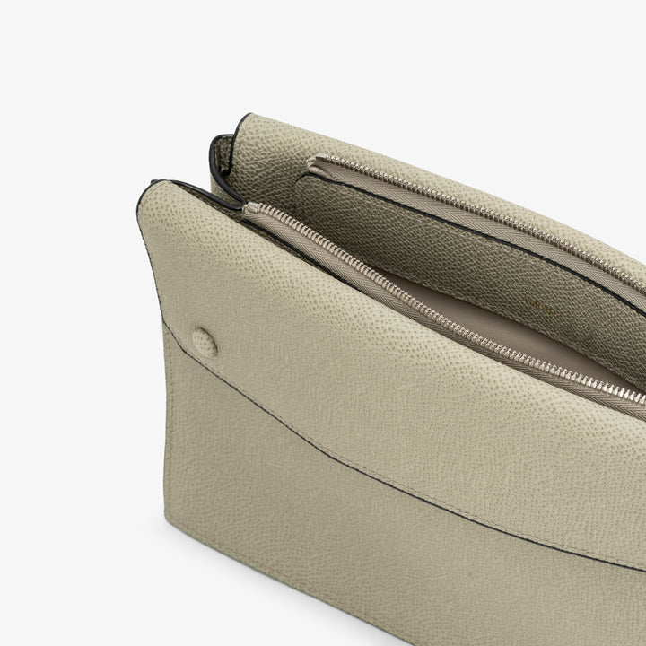 ボディはフラップ付きコンパートメントが2つにジッパー付コンパートメントが1つ、ショルダーストラップを外せばクラッチバッグにも。
