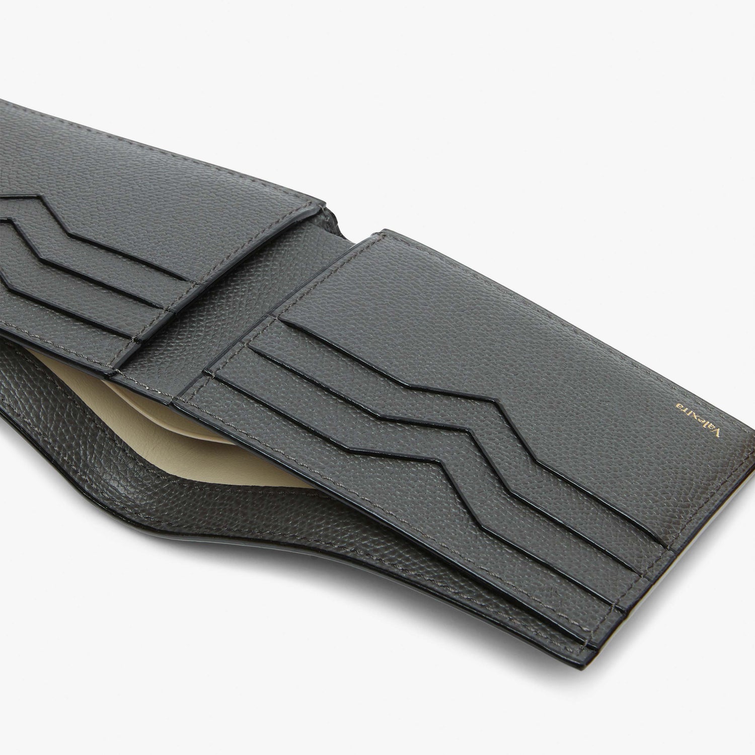 時代にとらわれないエレガントでクラシックな2つ折り財布は、今も必携のアイテムです。ブランドの象徴であるV字カットが施された6つのクレジットカードスロット、多目的のコンパートメント2つ付き。ライナーは革張り。