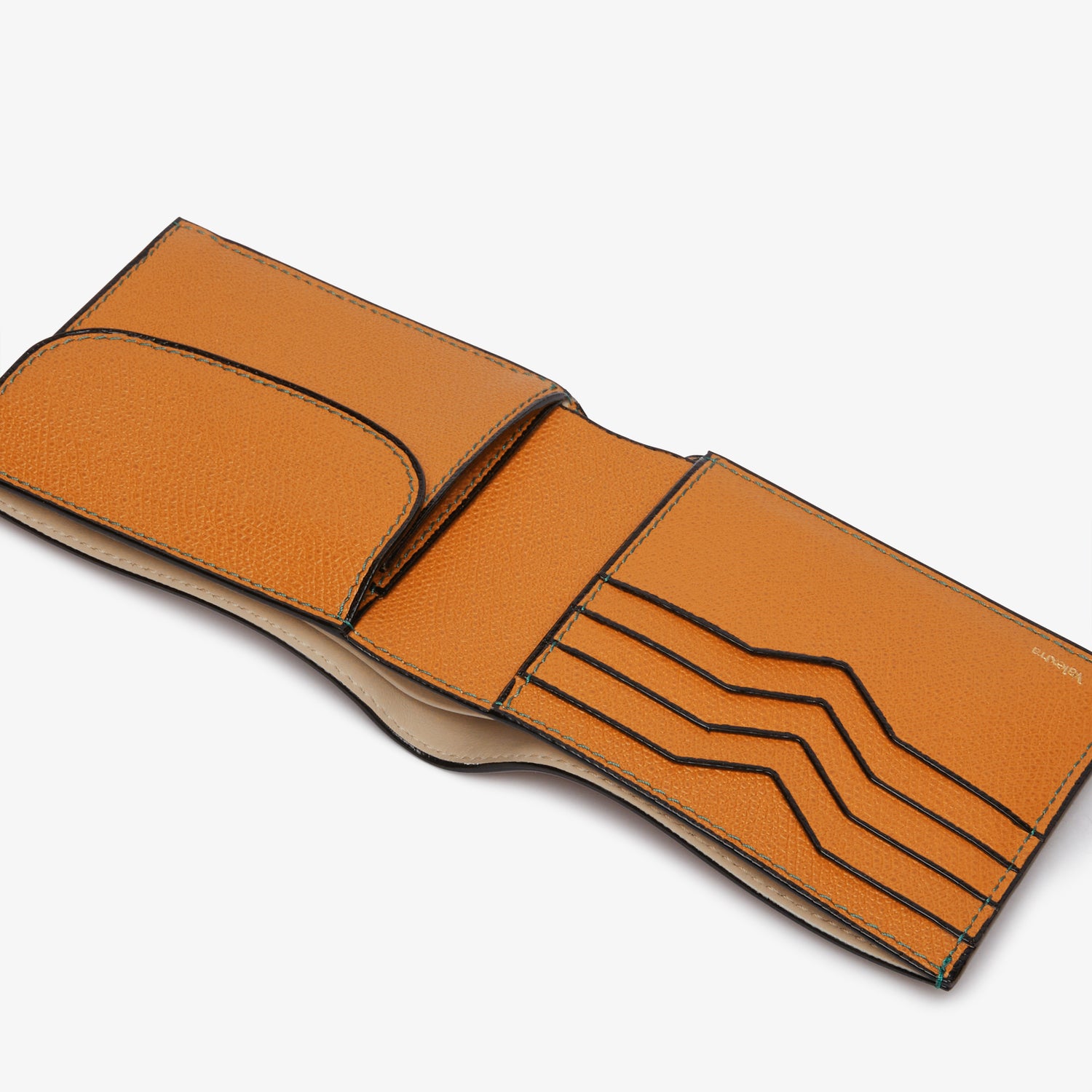 時代にとらわれないエレガントでクラシックな財布は、今も必携のアイテムです。ブランドの象徴であるV字カットが施された4つのクレジットカードスロット、多目的のコンパートメント2つ付き。ライナーは革張り。