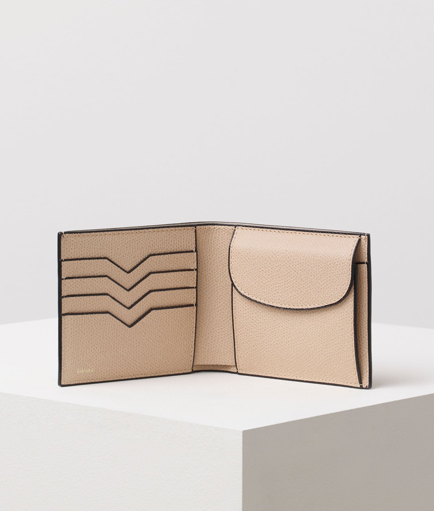 時代にとらわれないエレガントでクラシックな財布は、今も必携のアイテムです。ブランドの象徴であるV字カットが施された4つのクレジットカードスロット、多目的のコンパートメント2つ付き。ライナーは革張り。