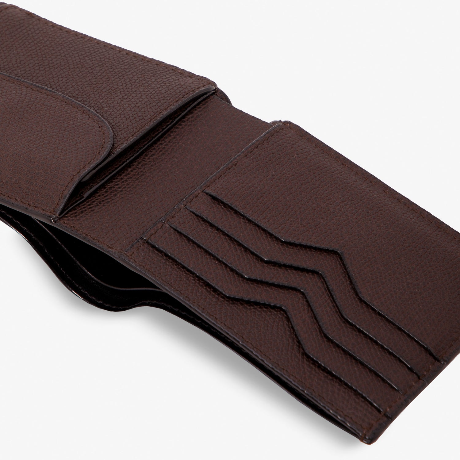 時代にとらわれないエレガントでクラシックな財布は、今も必携のアイテムです。ブランドの象徴であるV字カットが施された4つのクレジットカードスロット、多目的のコンパートメント2つ付き。ライナーは革張り。
