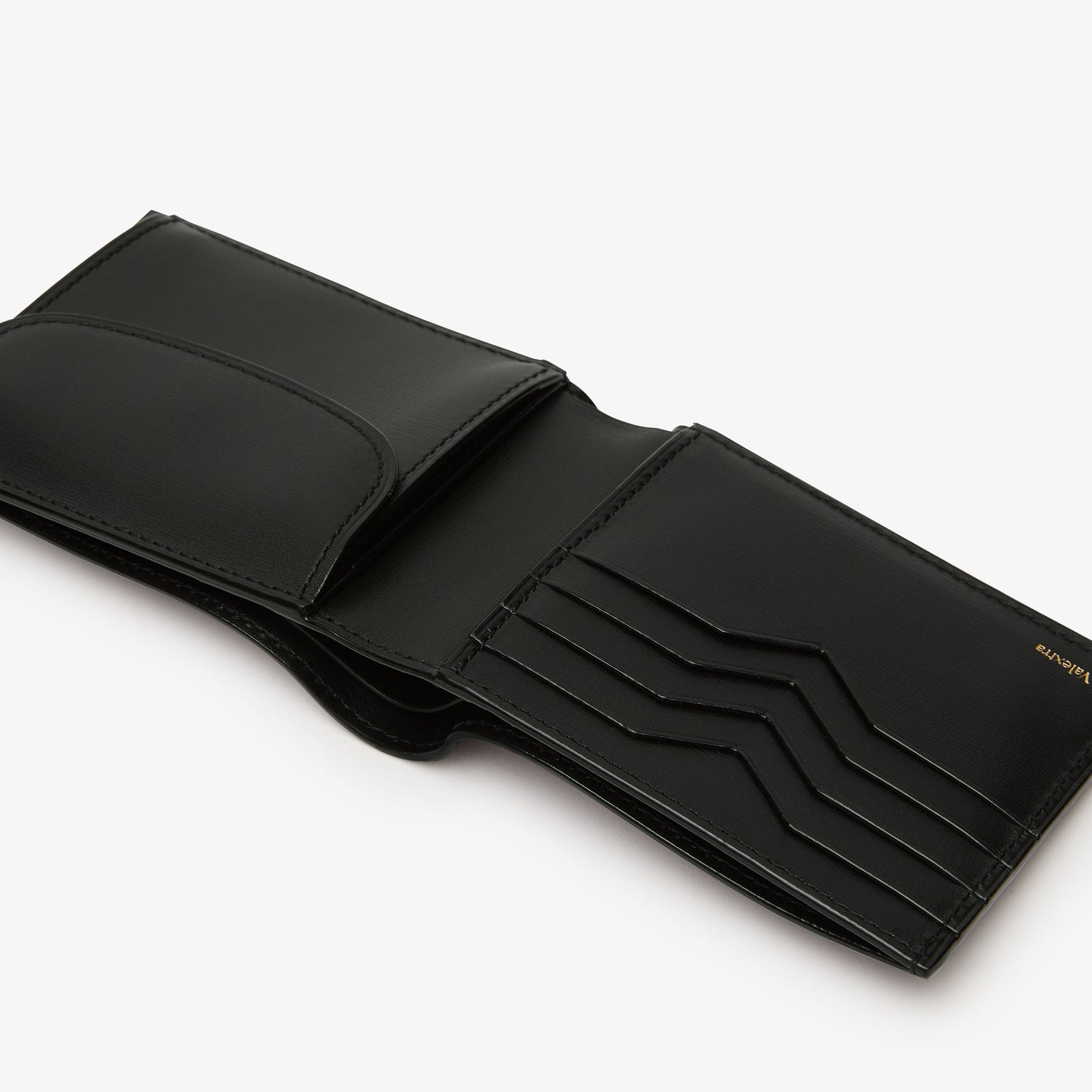 エレガントでクラシックな二つ折り財布は、いつの時代においても定番のアイテム。コイン用コンパートメントの他、ブランドの象徴であるV字カットが施された4つのカードスロットと2つの多目的のコンパートメントがあります。